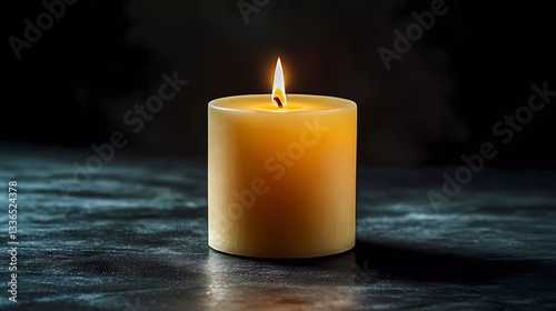 A flickering wax candle with melting wax drips creates a soothing ambiance in a contemporary book illustration style.