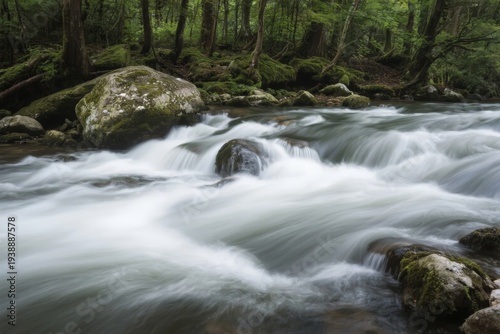 river, rapid, water, forest, moss, rock, nature, stream, wilderness, greenery, tree, flowing water, mountain stream, environment, ecosystem, tranquil, scenic, long exposure, motion blur