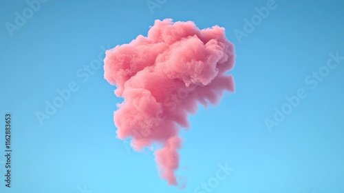 A fluffy pink cloud against a clear blue sky, evoking a whimsical and dreamy atmosphere.