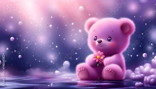 teddy, bear, pink, flower, dreamy, bokeh, water, cute, fluffy, sitting, soft, light, purple, bubble, float, whimsical, adorable, sweet, charming, lovely, cuddly, plush, animal, toy, illustration, graphic, digital, art, design, fantasy, background, aesthetic, pastel, gentle, serene, calm, peaceful, relaxing, tranquil, delicate, pretty, bright, glow, shiny, sparkle, magic, vibrant, render