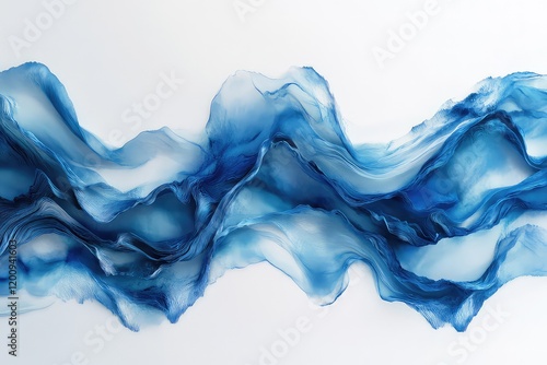 A fluid abstract design of smooth blue waves flowing diagonally on a white surface.