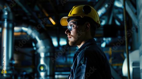 men at work, industrial, focused, young, male, industry, facility, manufacturing, equipment, blue-collar, technician, safety, machinery, professional, job site, inspection, engineering, plant, production, expertise, workwear, protective clothing, career, labor, technical, mechanical, construction, infrastructure, oversight, diligent, serious, monitoring, quality control, metalwork, maintenance, operation