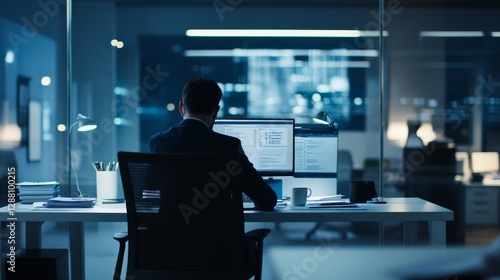 A forensic accountant investigating financial transactions related to money laundering in a modern office. Featuring focus and precision