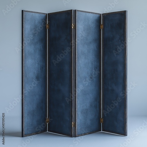 divider, screen, room, panel, fabric, wooden, frame, blue, dark, grey, interior, design, home, decor, office, modern, contemporary, minimalist, simple, elegant, stylish, classic, vintage, traditional, japanese, asian, culture, furniture, house, apartment, living, bedchamber, workspace, partition, privacy, fold, racked, background, isolated, white, clean