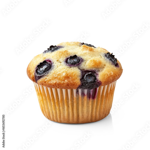 A fresh blueberry muffin with berries peeking through the golden crust. full length isolate on transparent background