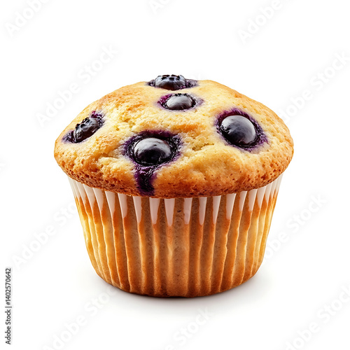 freshly, baked, blueberry, muffin, gold, brown, top, soft, crumb, visible, blueberry, isolated, white, background, art, style, flat, photo, front, view, gooey, fluffy, texture, resolution, additional, condiment, side