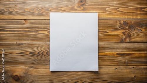 A freshly opened crisp blank white paper sheet lies flat on a clean wooden desk, surrounded by empty space, awaiting creative expression and inspiration.