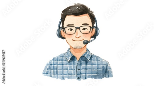 man, portrait, friendly, earphones, casual attire, head shot, smile, goggles, relaxed, communication, technology, shirt, young, businessman, office, desk, men at work, employee, programmer, client, call, center, service, adult, professional, computer, media, audio, tech, cyberspace
