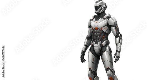 futuristic, armoring, character, white, grey, suit, background, full body, helmet, glove, boot, science fiction, technology, protection, design, illustration, artwork, concept, modern, innovative, advanced, fighter, soldier, warrior, robot, cyborg, mechanical, artificial, intelligence, space, exploration, defense, security, uniform, gear, equipment, outfit, attire, standing