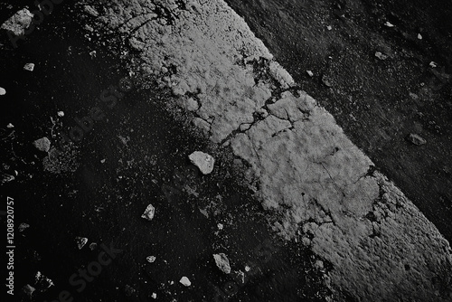 A full frame shot of a grungy asphalt road