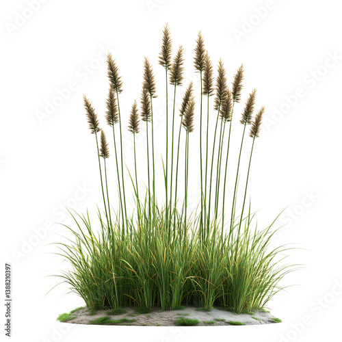 A Full Stand of Vibrant Green Sedge Plants Isolated on Transparent Background