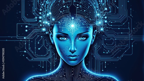 technology, woman, circuit, blue, digital, futuristic, intelligence, design, art, neural, interface, cyber, innovation, science, beauty, abstraction, creativity, aesthetic, pattern, glowing, modern, portrait, graphic, cybernetic, human, virtual, energy, connection, emotion, evolution, identity, datum, system, network, light, concept, robotic, fantasy, visualisation, harmony, progress, surreal, influence, environment, synthesis, interaction, imagination, perspective, representation