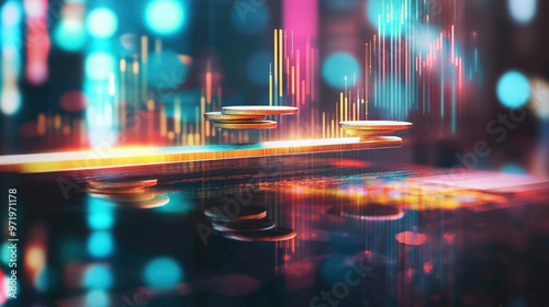 floating, volatility, risk, vibrant, investment, balance, economy, light, finance, three-dimensional, money, technology, reward, forex, electronic, seesaw, datum, chart, currency, glowing, graph, stock, coin, wealth, modern, colourful, digital, futuristic, bright, trading, bokeh, abstract, stock exchange, dynamic, visualisation, night, city, traffic
