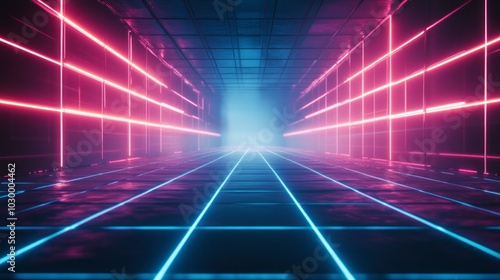neon, light, glow, futuristic, hallway, corridor, abstract, modern, technology, science, design, background, digital, bright, vibrant, pattern, graphic, geometric, space, future, style, minimal, dark, three-dimensional, render, illustration, art, concept, retro, vintage, energy, electric, light, shadow, texture, surface, blue, pink, red, colours, gradient, metal, grid, line, shape, angle
