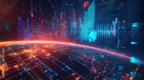 A futuristic holographic chart showing a positive economic trend, symbolizing financial growth, global trade, and investment opportunities.