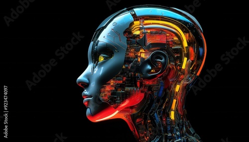 robot, android, technology, circuitry, future, artificial, intelligence, electronic, glowing, profile, digital, innovation, machinery, design, cybernetic, head, intricate, modern, development, science, fiction, aesthetic, computer, architecture, engineering, neon, life, portrait, colours, sleek, mechanical, smart, virtual, futuristic, sculpture, concept, art, creative, identity, machine, learning, robotic, enhancement