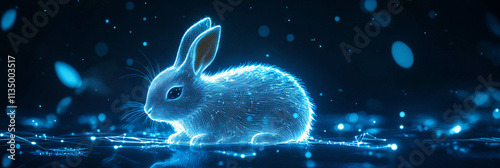 A futuristic rabbit icon glowing with habitat data, symbolizing online wildlife conservation platforms, digital animal tracking, and biodiversity analytics.