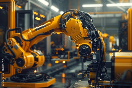 futuristic, robotic, project, poster, industrial, robot, powerful, rugged, yellow, black, manufacturing, plant, complex, machinery, robotic, arm, warm, lighting, dramatic, shadow, advanced, technology, robust, high technology, automation, innovation, sophisticated, intelligent, automated, modern, efficient, sleek, contemporary, cutting edge, industry, factory, precise, hard-wearing, streamlined, mechanical, engineering, smart, equipment