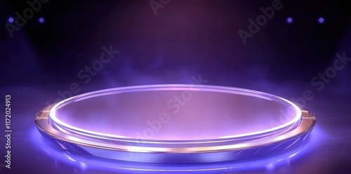 stage, platform, glow, light, mist, design, futuristic, circular, space, performance, entertainment, technology, ambience, illumination, creativity, showcase, event, visual, presentation, atmosphere, artistic, scene, modern, exhibition, background, effect, colours, purple, round, surface, dynamic, projection, spotlight, innovation, concept, aesthetic, display, theatre, production, lighting, environment, digital, art, interaction, setting, sharpened, theme, style, life events