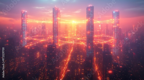 futuristic, urban, landscape, night, illuminated, wireless, connectivity, line, highrise, communication, network, city landscape, reflections, sleek, glasses, building, hd, high-coloured, colours, cinematic, lighting, theme, panoramic, view, seamless, flow, pulse, tech, glow, streaming, modern, skyline, vibrant, digital, energy