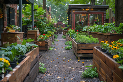 A garden with various types of plants creating a lush and colorful display urban gardening