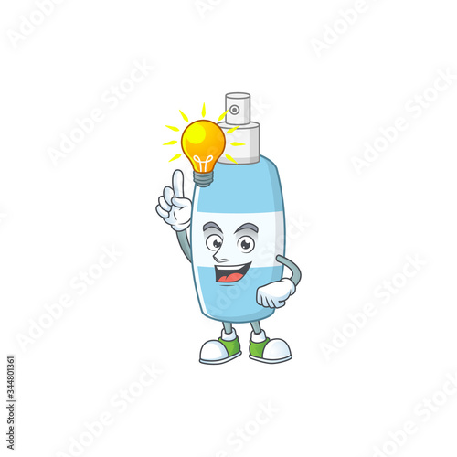 A genius spray hand sanitizer mascot character design have an idea