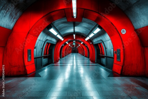 geometric, interpretation, urban, subway, station, entrance, simple, form, bold, contrasting, tone, grey, red