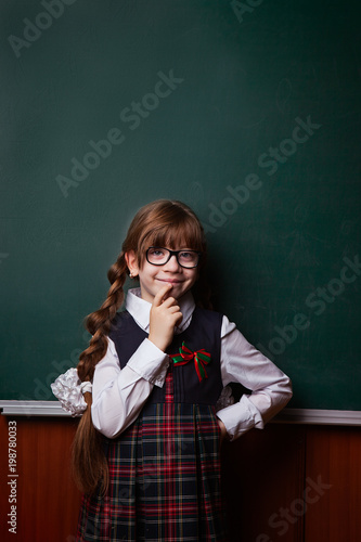 girl, schoolgirl, cloud, thought, inscription, place, text, idea, class, school, blackboard, green, red, uniform, 1, vertical, goggles, sight, education, cognition, training, science, institution, nirvana, children, student