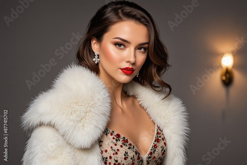 A glamorous evening in a furry embrace: a womans graceful portrait