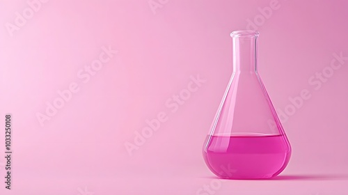 A Glass Erlenmeyer Flask Filled With Pink Liquid on a Pink Background