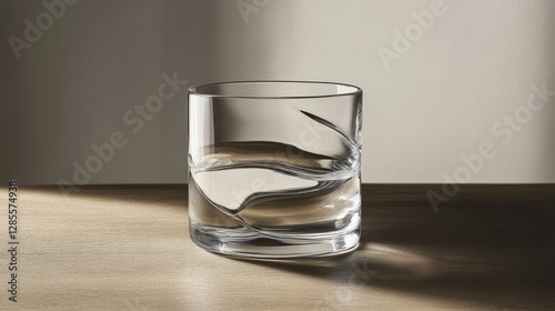 A glass of water on a wooden table, symbolizing simplicity and purity.