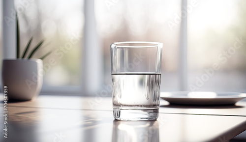 A Glass of water on table in kitchen in morning for drinking in order to good health and wellness, digest,