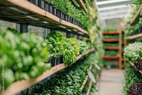 indoor, farm, greenhouse, sustainable, farming, agriculture, vegetable, lettuce, spinach, basil, herb, plant, growth, harvest, fresh, organic, healthy, environmentally friendly, hydroponics, technology, innovation, nature, life, green, vibrant, natural light, environment, future, modern, clean