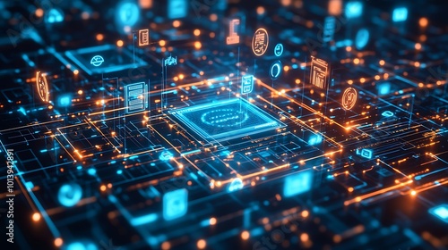 abstract, blue, circuit, board, chips, processor, network, datum, digital, icon, technology, future, innovation, connection, communication, cyberspace, web, cloud, computing, information, security, artificial, intelligence, automation, system, modern, design, science, background, pattern, graphic, futuristic, light, glow, neon, concept, illustration, wallpaper, seamless, business, three-dimensional, render