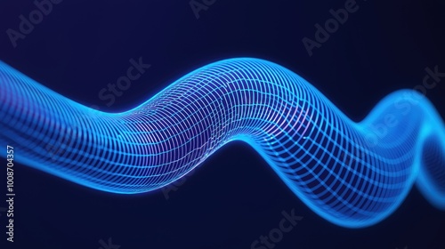 A glowing blue wave of interconnected lines, representing digital connectivity and futuristic technology against a dark backdrop.