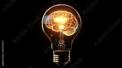A glowing bulb with a brain-shaped filament, shining bright in the darkness, symbolizing the spark of genius.