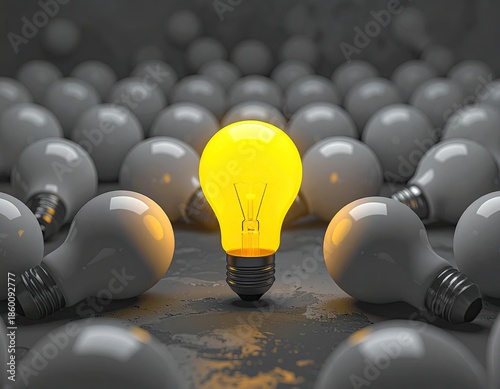 idea, bright, concept, thought, innovation, creativity, light, bulb, shine, vision, yellow, contrast, standout, unique, different, glow, illuminated, sharpened, clarity, solution, inspiration, energy, intelligence, thinking, progress, development, strategy, insight, cognition, discover, achieve, spark, generate, imaginative, invent, problem, canvasses, consider, reflect, evolve, understand, identify, question, explore, examine, learn