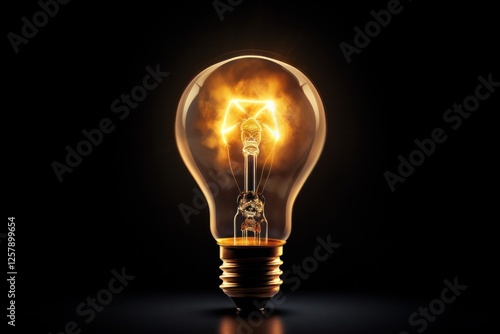 A glowing light bulb with a brilliant, abstract light effect radiating in a dark, black background