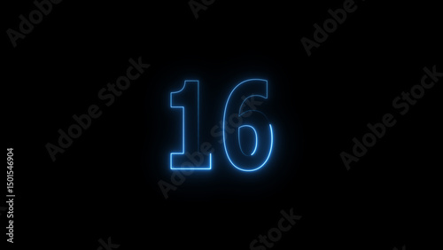 A glowing neon 16 number illustration . on a black background. and creating a illustration stunning 4k illustration .