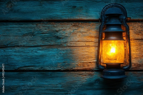 A Glowing Oil Lamp Mounted on Weathered Wood