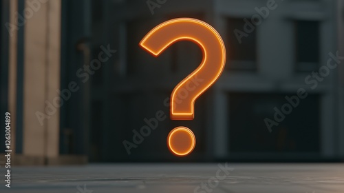 A glowing orange question mark symbol against a blurred urban background, evoking curiosity and intrigue.
