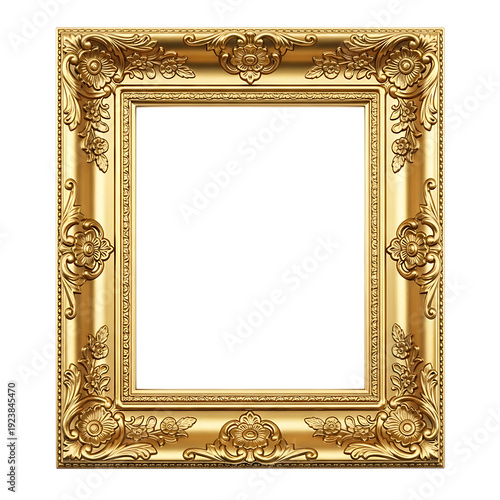A gold picture frame on transparent background