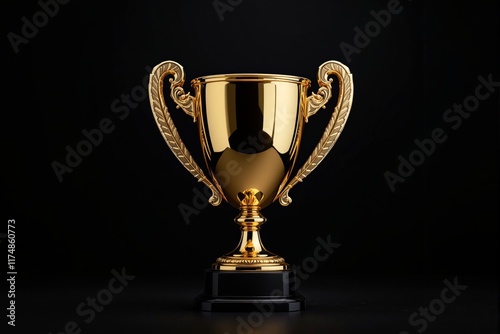 A golden trophy cup with intricate designs, displayed prominently on a dark background, symbolizing victory, achievement, and excellence. Ai generative