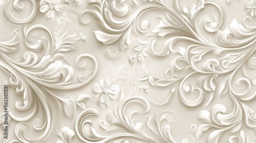 A graceful cream design featuring flowing swirls and ornate floral accents seamlessly arranged for elegance