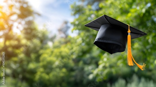 graduation, cap, floating, empty, space, sky, education, achievement, success, ceremony, diploma, academic, milestone, college, university, commencement, creativity, optimism, imagination, balance, levitation, hover, fly, lift, airborne, minimalist, simple, copy space, background, design, degree, hat, fly up, high, levitate, rise, fly up, ascend, ascension, graduate, scholar, studious, smart, brainy, clever, bright, accomplished