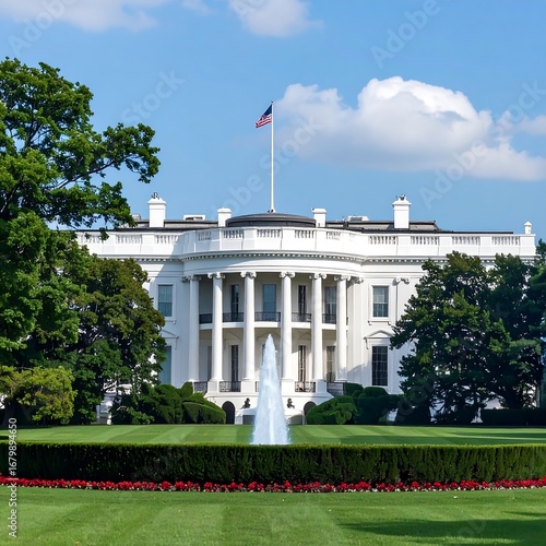 building, white, lawn, fountain, tree, hedge, flower, american, flag, government, architecture, summer, daylight, exterior, landscape, park, detail, facades, column, capitol, presidential, house, ground, scenery, nature, garden, blue, sky, cloud, grass, beautiful, colourful, bright, creative, modern, elegant, stylish, professional, decorative, vibrant, stunning, amazing, marvellously, fantastic, gorgeous, lovely, charming, attractive