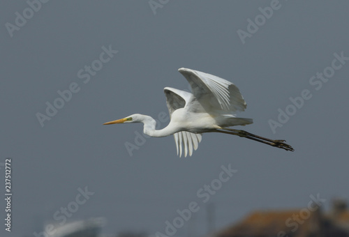 A Great white Egret (Ardea alba) in flight.