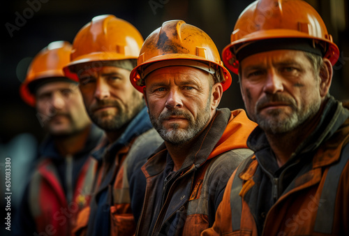 A group of construction team, Construction workers in vests and in hard hats for safety. USA Labor Day celebration. Generative AI.