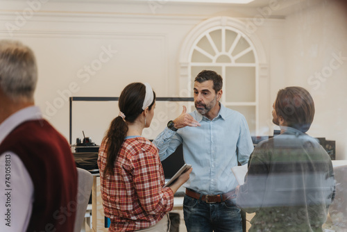 working, office work, project, conversation, communication, white-collar, group, adult, office, engagement, female, brainstorming, business meeting, innovation, problem solving, corporate, woman, man, consultation, leadership, presentation, workplace, productivity, creative, work, expertise, meeting, discussion, teamwork, professional, cooperation, planning, business, idea, working together, colleague, talking, colleague, executive, strategy, management, team, interact, collaboration