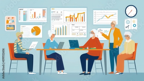 elderly, workshop, discussion, engagement, education, teamwork, presentation, research, statistic, interactive, graphic, technology, device, program, communication, creativity, brainstorming, problem solving, chart, graph, enrichment, social gathering, generative, ai